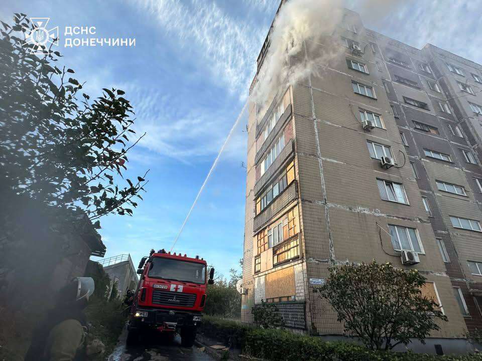 ▪️ У Добропіллі через обстріл загорілися балкони у 9-поверхівці. Площа пожежі – 25 кв. м. Через повторні удари надзвичайники були змушені тимчасово зупинити гасіння.