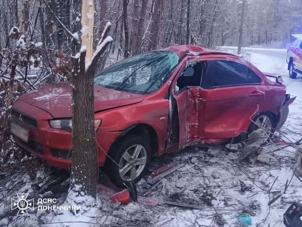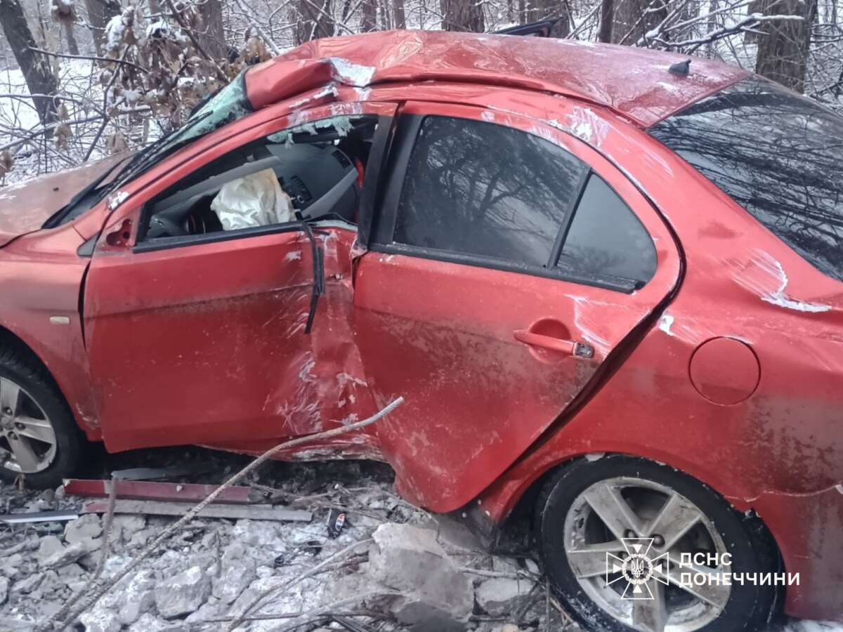 Сьогодні, 9 лютого, у Слов’янську внаслідок зіткнення легкового автомобіля з опорою стовпа чоловіка затиснуло всередині салону автівки.