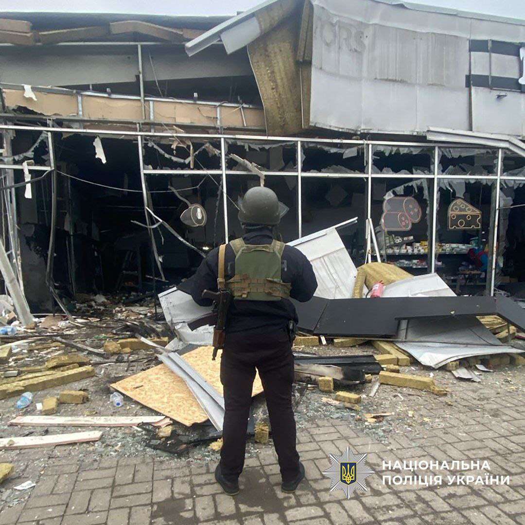 По Краматорську росіяни вдарили двома БпЛА «V2U» – поранили 5 цивільних осіб, пошкодили багатоквартирний будинок, магазин, цивільне авто.